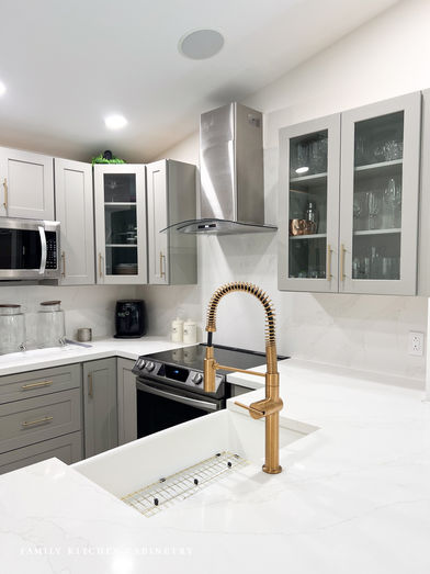 Embracing the elegance of simplicity with Kamila's stunning gray kitchen.